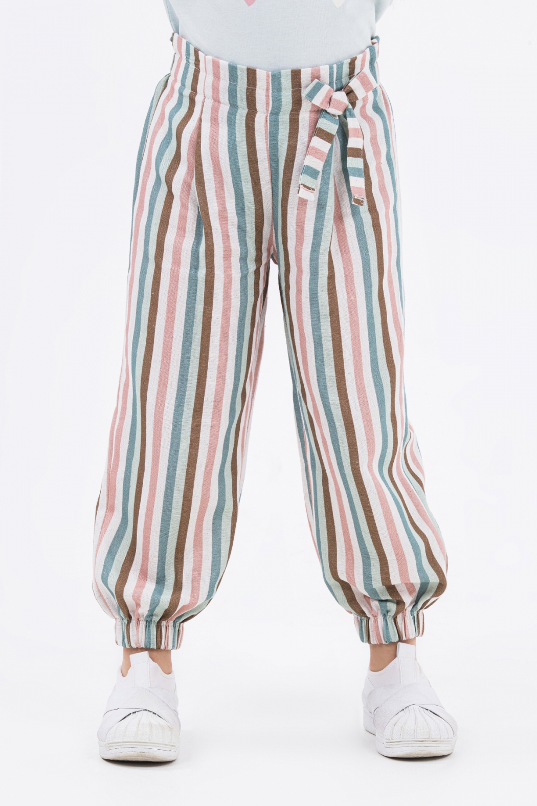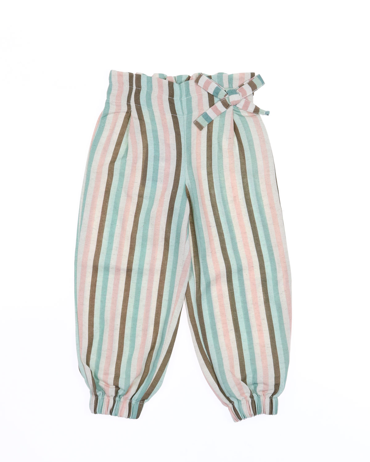 Летние брюки для девочки оптом. Трендовая модель летнего сезона. Брюки отлично стройнят фигуру, подходят для полных девочек. Спереди брюки оформлены вытачками и декоративным бантом, сзади пояс собран резинкой.