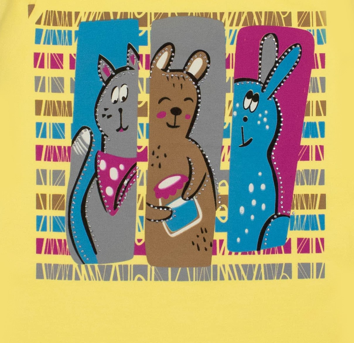 Футболка ECRIN для девочки оптом, производства Турция. Модель приталенного кроя из мягкого и эластичного трикотажа, принт украшен стразами.