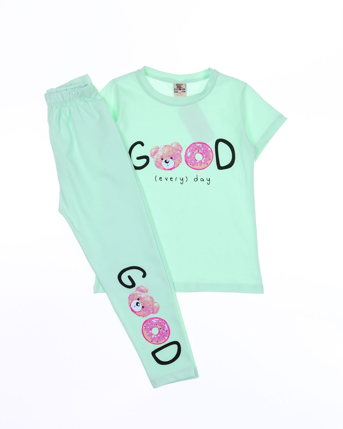 Практичный костюм для девочки оптом состоит из футболки и лосин. Горловина футболки обработана эластичной бейкой. Лосины в поясе на резинке.  Костюм изготовлен из хлопкового полотна кулирка - нежного и мягкого, гипоаллергенного и легкого в уходе. Модель прекрасно подойдет для повседневной носки на улице или дома, для детского сада, а так же для активного отдыха и занятий спортом.