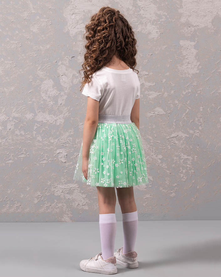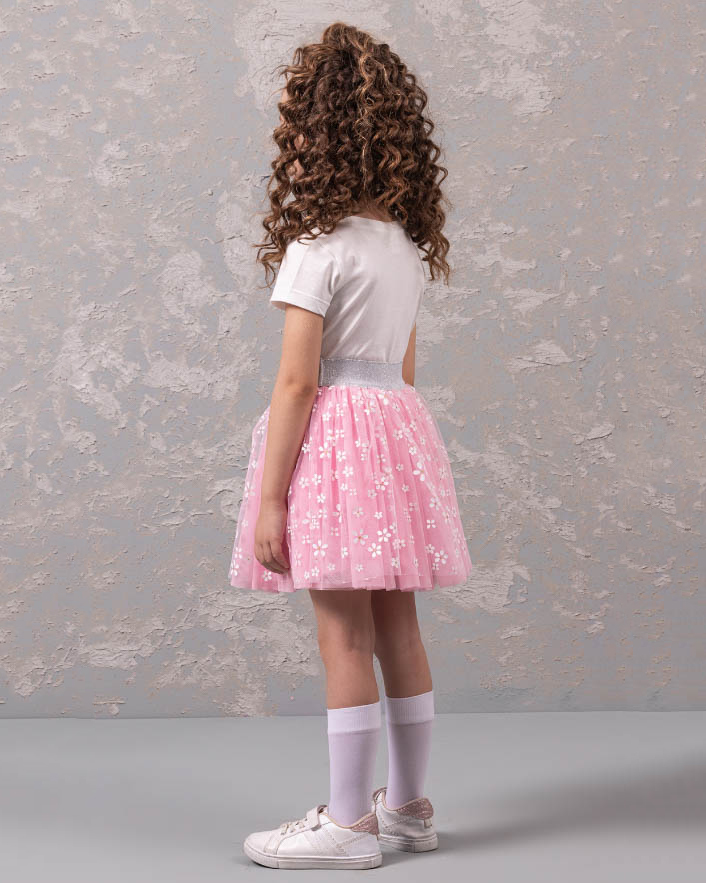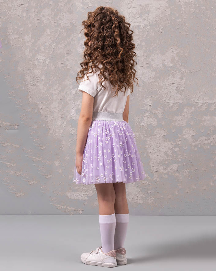 Нарядный костюм DMB для девочек оптом является уникальным предложением на рынке детской моды. Он произведен в Турции, известной своим качеством и безупречным стилем. На груди футболки расположен принт, который придает еще больше индивидуальности этому наряду. Юбка этого костюма также привлекает внимание. Она имеет широкую блестящую резинку, которая обеспечивает идеальную посадку на талии. Юбка сама по себе пышная и держит форму благодаря дополнительной юбке из сетки и хлопковому подъюбнику. Такое решение не только придает объем юбке, но и создает особый эффект при движении.