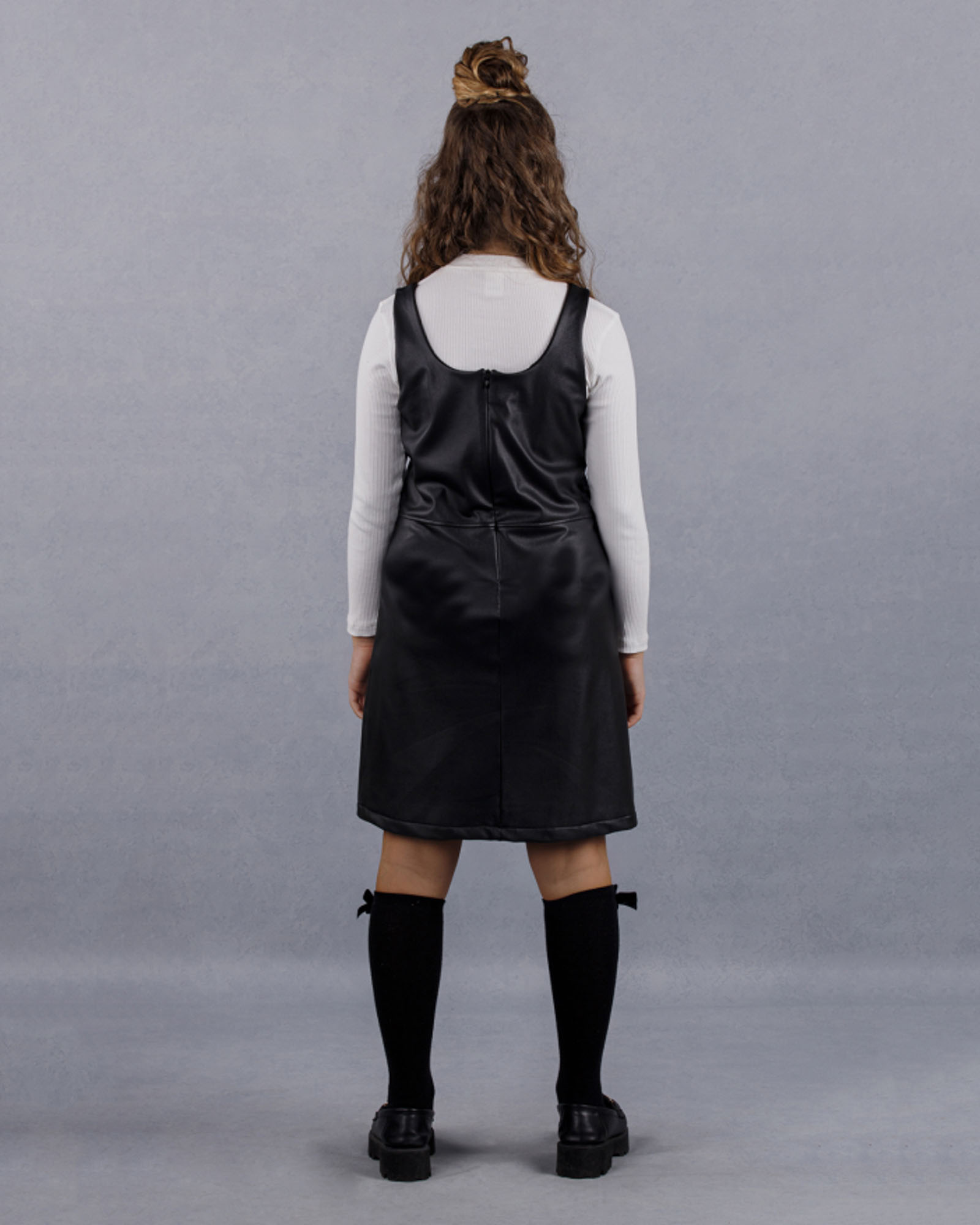Эта модель отлично впишется в базовый гардероб. Сарафан исполнен в трёх цветах. Сарафан из эко-кожи приталенного силуэта сзади застегивается на потайную молнию,изнаночная сторона сарафана без подклада.