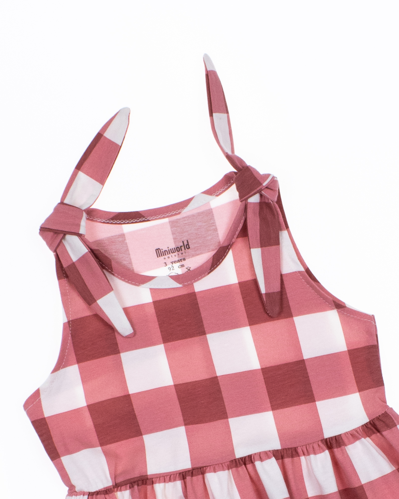 Летнее платье для девочки оптом, выполнено из эластичного хлопкового трикотажа. Платье без рукавов с декоративными завязками на плечах, расклешенное снизу.