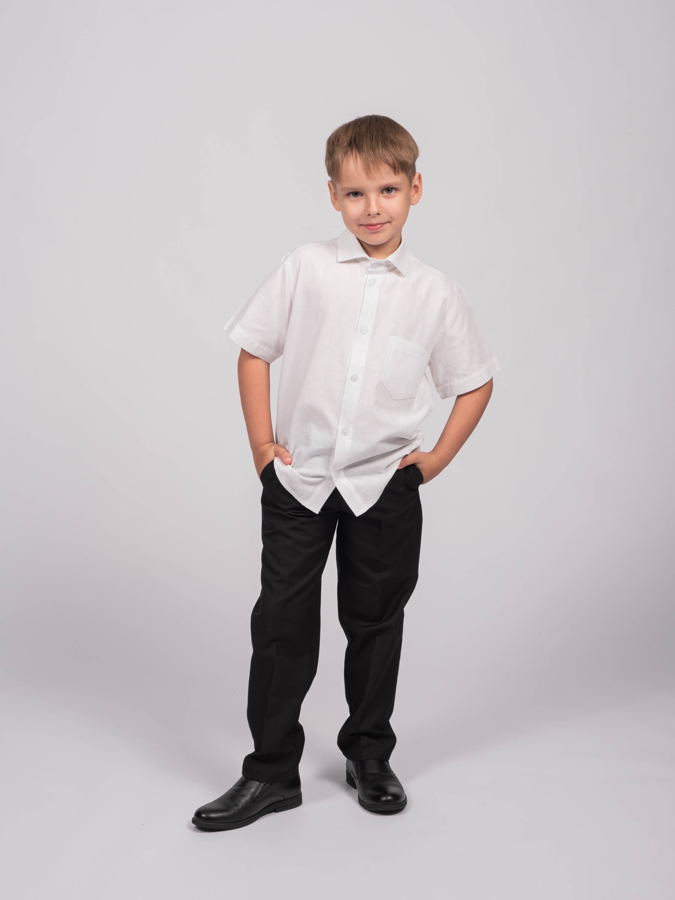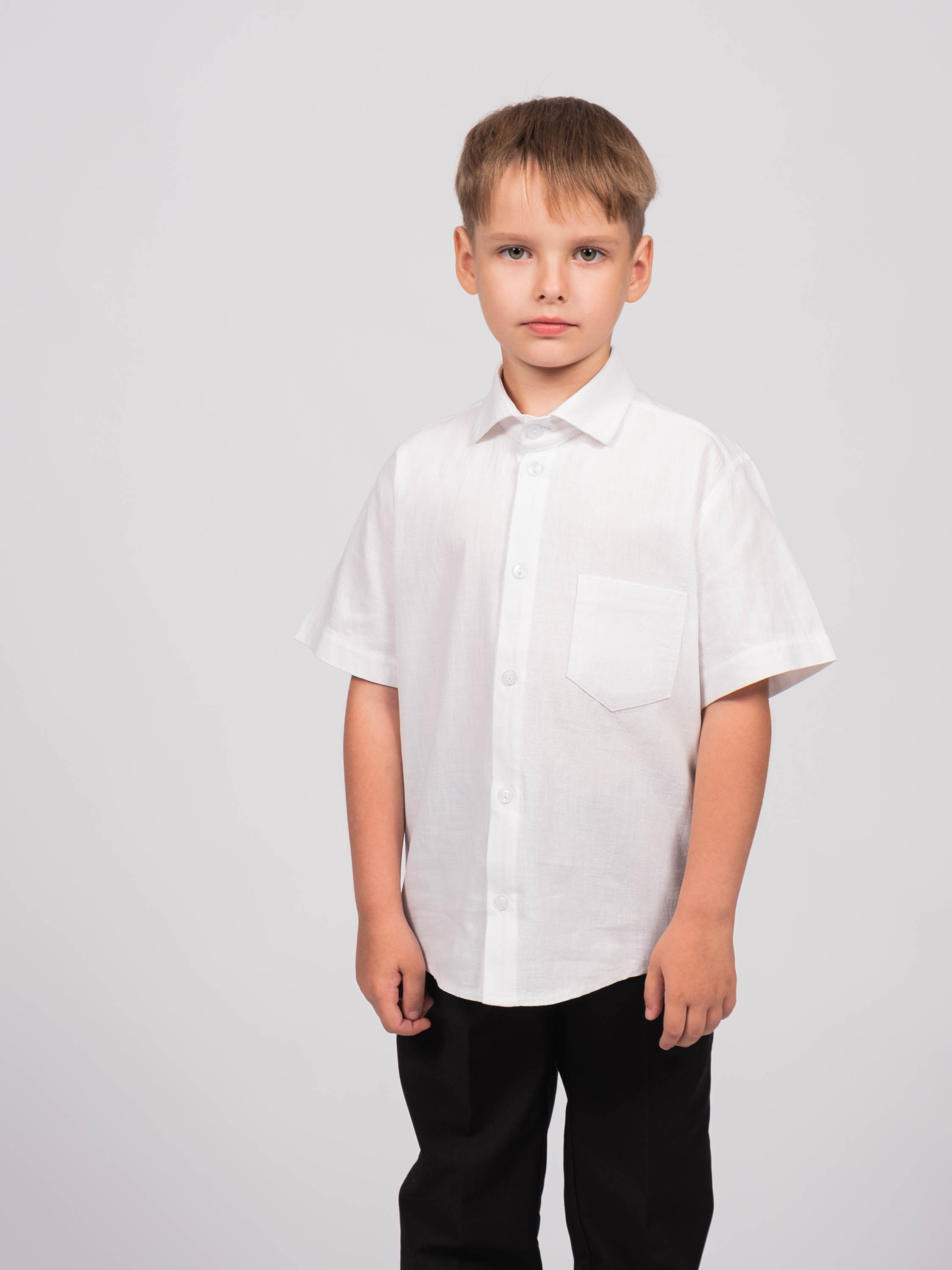Детская однотонная рубашка для мальчика оптом. Рубашка изготавлена  из хлопка высокого качества. Модель застегивается на пуговицы.