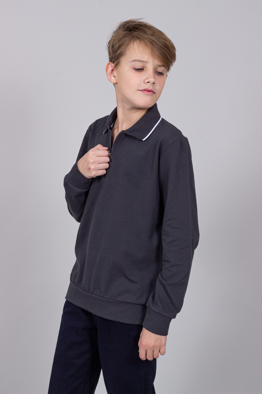 Детское поло для мальчиков. Поло имеет прямой силуэт, застёжку-планку на молнии, отложной воротник, эластичные манжеты по низу. Поло для мальчика - отличная альтернатива классической рубашке. Поло для мальчика идеально подойдет на каждый день и в качестве верха школьной формы. Поло не деформируется и не растягивается в процессе эксплуатации и после стирки.