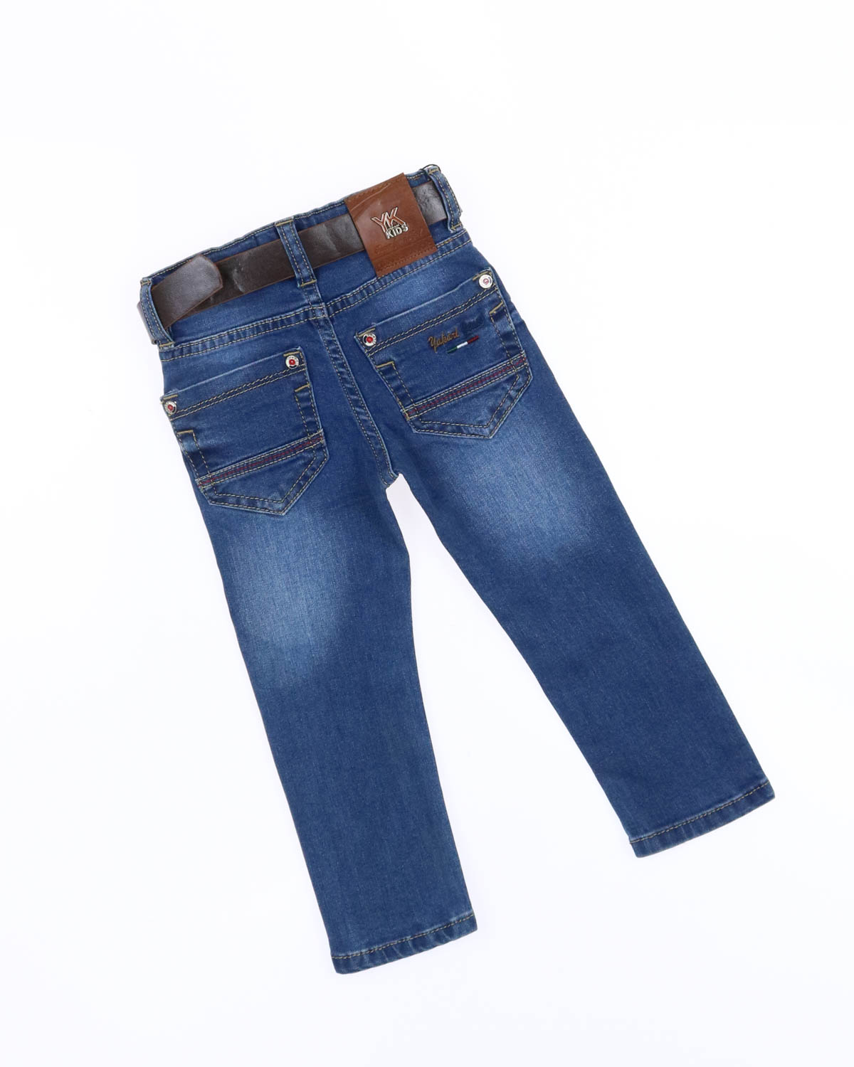 Классические джинсы синего цвета для мальчиков с добавлением эластана в классическом крое. Посадка талии средняя. Внутри на поясе есть регулятор талии.
