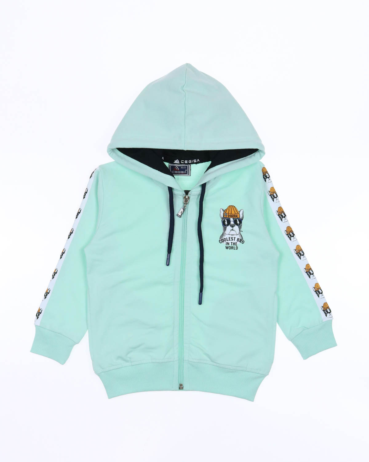 Толстовка CEGISA для мальчика оптом. Выполнена из хлопка с добавлением эластана. Низ изделия и рукава на трикотажном манжете. Вместительные карманы и разъемная застежка - молния. Хорошо сохраняет цвет и форму при длительной носке и после многократных стирок.