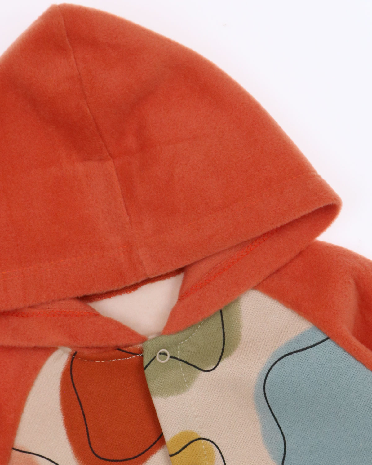 Детский комбинезон можно носить как самостоятельную одежду весной/осенью или утеплить ребенка в холодное время года. Комбинезон с закрытыми ножками не сковывает движений, имеет свободный крой и подходит для ношения подгузника. Комбинезон выполнен из трикотажа футер (начес), капюшон и рукава из флиса,застегивается на кнопки.