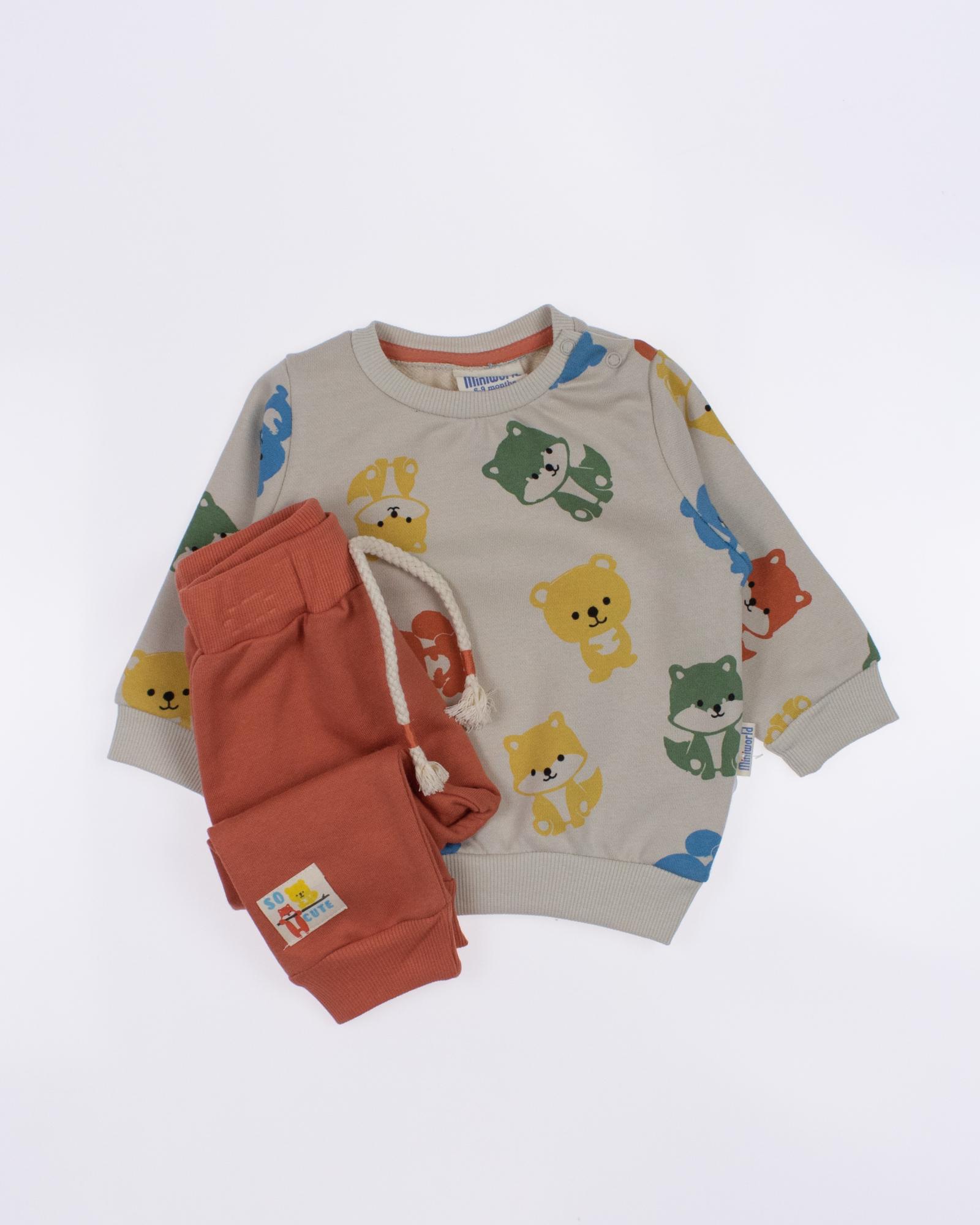 Мы предлагаем оптовые продажи детской одежды производства Турция. Хлопковый костюм MINIWORLD выполнен из футер (петля), что гарантирует комфорт и безопасность для самых маленьких детей. Свитшот имеет удобную застежку-кнопки на плече, что облегчит процесс надевания и снятия одежды. Штанишки с мягкими манжетами на эластичном поясе идеально подходят для ношения с подгузником, обеспечивая свободу движений и комфорт. Детский милый принт на костюме поможет развить фантазию и воображение ребенка, делая его образ ярким и запоминающимся. Костюм MINIWORLD - отличный выбор для маленьких модников и их заботливых родителей. Не упустите возможность приобрести этот уникальный товар оптом по выгодной цене!