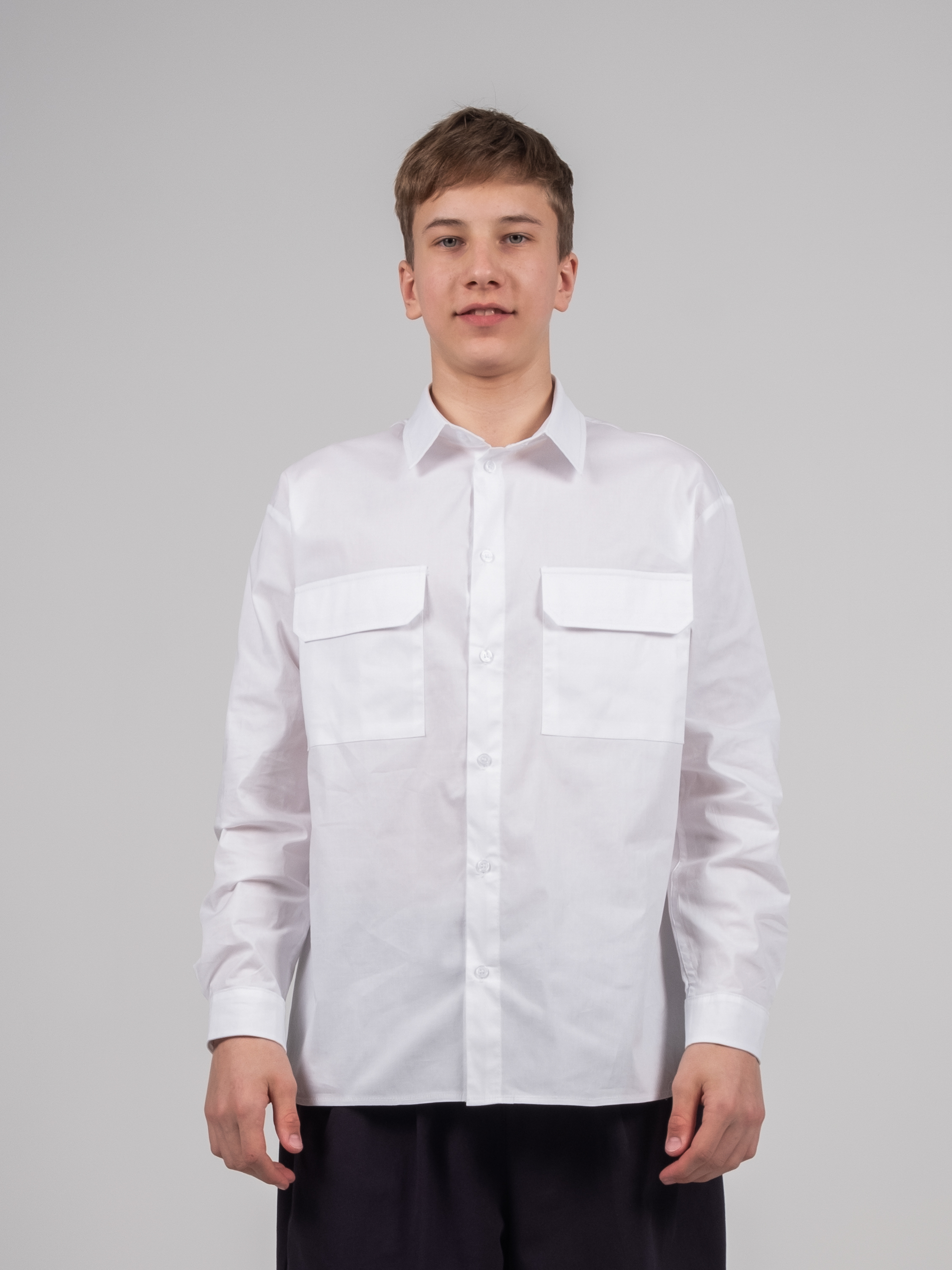 Детали: два накладных кармана на груди — функционально и стильно.